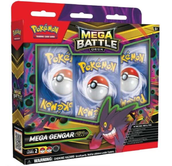 ¡Prepárate para desatar el poder de las megaevoluciones con los nuevos Mega Battle Decks de Pokémon! Esta edición especial incluye dos impresionantes barajas protagonizadas por Mega Gengar y Mega Diancie, ideales tanto para jugadores competitivos como para coleccionistas.